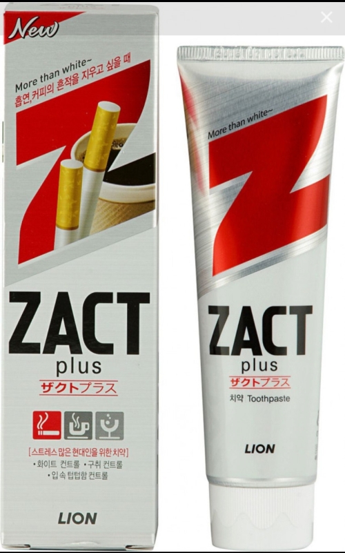 №7265 Lion Зубная паста для курящих «Zact toothpaste» Входящие в состав очищающие и полирующие компоненты — вторичнокислый фосфат кальция и оксид алюминия, эффективно удаляют никотиновый налет с поверхности зубов, очищают зубную эмаль от темного налета кофе и чая, делая зубы белыми, здоровыми и красивыми.