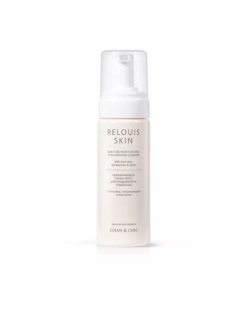 №9464 Relouis skin Увлажняющая пенка-мусс для ежедневного умывания Пенка с плотной кремово-муссовой текстурой и эксклюзивным сочетанием активных компонентов для эффективного бережного очищения кожи и снятия макияжа. Ниацинамид уменьшает трансэпидермальную потерю воды, улучшает барьерные функции кожи, стимулирует синтез церамидов и выработку коллагена. Биотин жизненно необходим для поддержания здорового состояния кожи, способствует увлажнению и предотвращению сухости и шелушения. Алоэ Вера увлажняет, успокаивает, улучшает эластичность кожи, насыщает ее витаминами и микроэлементами.