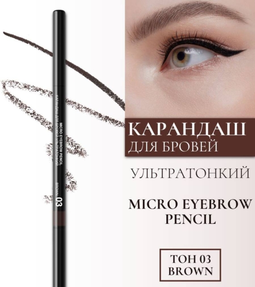№9379 Relouis карандаш для бровей ультратонкий 03 brown Ультратонкий треугольный стержень создает тончайшие штрихи, которые позволяют имитировать натуральный волос. Идеален для заполнения цветом менее густых участков бровей. Форма грифеля делает продукт многофункциональным: плоская сторона карандаша подходит для прорисовки формы, быстрого и легкого заполнения бровей цветом, заостренная – для тонких штрихов, имитирующих волоски