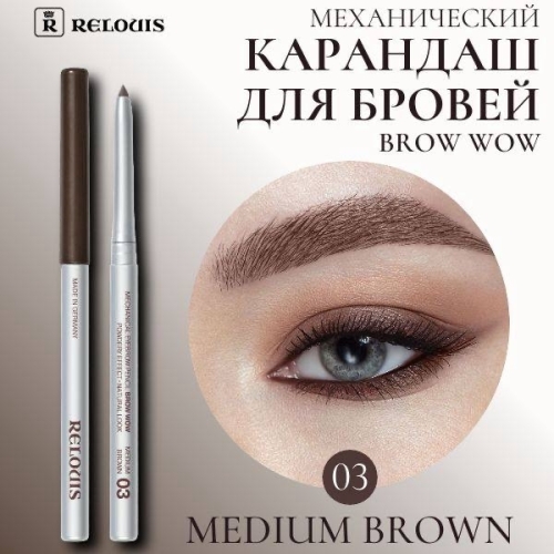 №9733 Relouis механический карандаш для бровей BEOW WOW 03 medium brown BROW WOW КАРАНДАШ МЕХАНИЧЕСКИЙ ДЛЯ БРОВЕЙ Особая пудровая текстура не требует дополнительной растушевки. — обеспечивает эффект естественных натуральных бровей, выразительных и ухоженных. — обеспечивает насыщенность и однородность цвета. — не нужно затачивать.