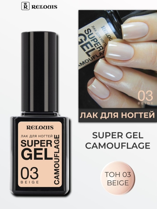 №7197 Relouis лак для ногтей super gel camouflage 03 натуральный вид ногтей с эффектом камуфляжа