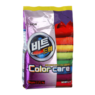№9538 Стиральный порошок Beat Drum Color Care для цветного белья 2250гр стиральный порошок мягкого действия, произведённый в Корее. Средство показывает высокую эффективность при работе с любыми видами тканей, кроме шёлка и шерсти. Благодаря входящим в состав ферментам порошок отлично справляется с въевшейся грязью и засохшими пятнами.