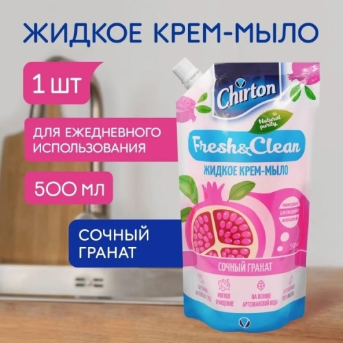 №4635 Chirton Крем-мыло жидкое «Сочный гранат» Жидкое крем-мыло серии Chirton предназначено для использования в целях личной гигиены для ежедневного ухода за кожей рук и тела. Средство эффективно моет и обеззараживает. Густая консистенция с приятным ароматом создаёт обильную пену. Мыло питает, смягчает и увлажняет кожу.