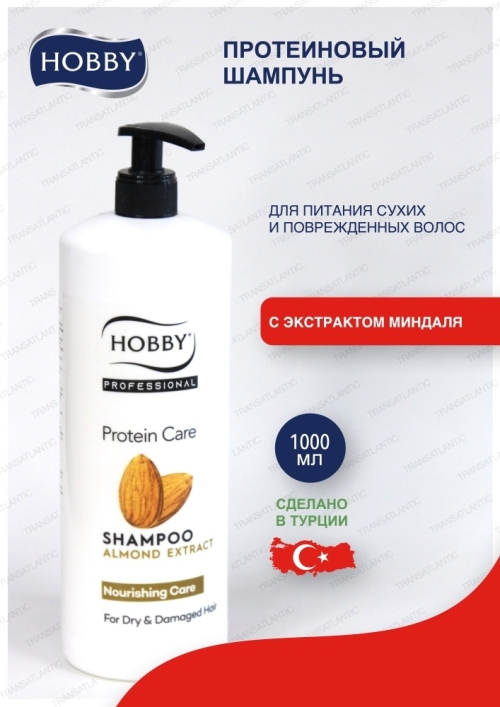 №4645 Шампунь Hobby Protein Care с протеинами и экстрактом миндаля 1 л Протеиновый шампунь для питания сухих и поврежденных волос с экстрактом Миндаля питает волосы от корней до кончиков за счет специальной формулы, обогащенной экстрактом миндаля. Придает вашим волосам естественный блеск и здоровый вид. 0% Парабенов. ДЛЯ СУХИХ И ПОВРЕЖДЕННЫХ ВОЛОС.