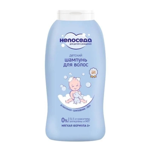 №4467 Шампунь для волос детский Непоседа, 400 мл Мягкий шампунь с календулой и ромашкой Непоседа создан специально для ухода за первыми локонами и нежной кожей головы новорожденных.