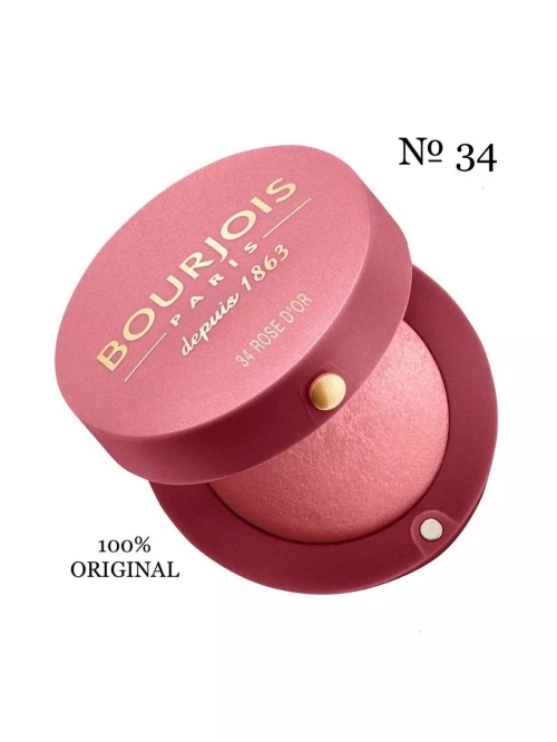 №5712 Bourjois Румяна Blusher / 34 ROSE D'OR Запеченные румяна Blusher в маленьких круглых баночках с ароматом розы - символ марки Bourjois с 1863 года. Нежная текстура румян при соприкосновении с кожей превращается в легкую, бархатистую пудру. Румяна невероятно легко наносятся и идеально ложатся. Кожа приобретает здоровый румянец! Нежнейшая кисточка из натурального колонка творит чудеса! Обволакивающий аромат розы, появляющийся при открытии румян Буржуа, создает легкое и игривое настроение, а встроенное зеркальце облегчает процесс нанесение.