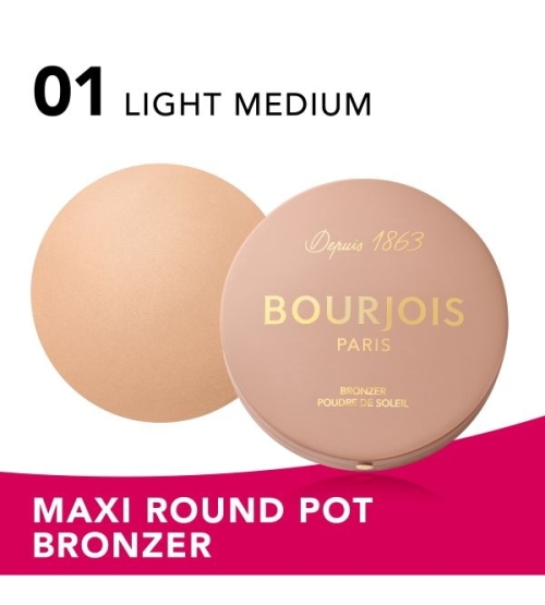 №6464 Bourjios Бронзер Maxi Round Pot Bronzer 001 Лёгкая бронзирующая пудра с матовым финишем и ультрамягкой текстурой обеспечивает ровное, комфортное нанесение и придаёт коже тёплый, здоровый оттенок на весь день. Формула обогащена маслом ши, которое ухаживает за кожей, смягчает её и сохраняет ощущение увлажнённости.