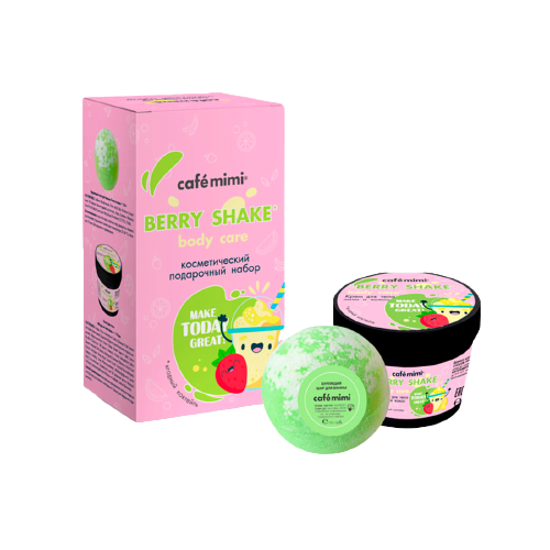 №4195 Cafe mimi Подарочный набор BERRY SHAKE Крем для тела с экстрактом земляники придает приятный ягодный аромат твоей коже после душа.