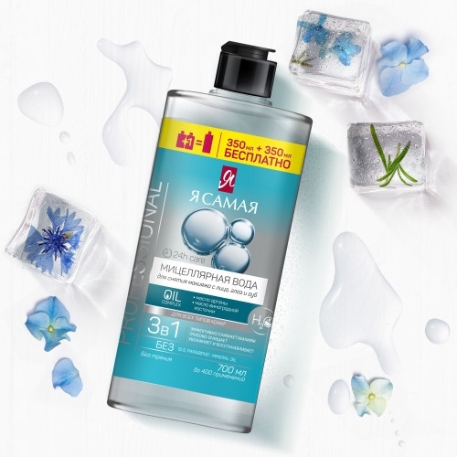 №1512 Мицеллярная вода Я Самая Professional 350+350ml 1+1 Мицеллярная вода эффективно удаляет макияж и очищает кожу лица без трения благодаря мицеллам, вытесняющим загрязнения, входящий в состав пептидный комплекс стимулирует клеточное обновление и повышает упругость кожи. Масло виноградных косточек увлажняет, тонизирует, насыщает кожу витаминами, актиксидантами и органическими солями. Масло арганы восстанавливает, питает, повышает эластичность, насыщая кожу витаминами и омега кислотами.