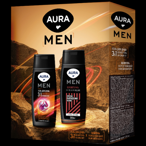 Aura men Гель для душа Энергия спорта 250 мл+Шампунь для волос Укрепляющий 250 мл