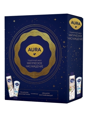 №2788 Aura Подарочный набор Магическое наслаждение: Гель для душа Молочный смузи, 250 мл и Крем для рук Аква комплекс, 75 мл Подарочный набор Aura включает в себя гель для душа и увлажняющий крем для рук. Гель окутывает кожу необыкновенно ароматными нотками кокоса и миндаля. Хлопковое молочко способствует восстановлению естественного уровня увлажненности кожи. Экстракты кокоса и миндаля делают кожу упругой и бархатистой. увлажняющий крем с пантенолом и гиалуроновой кислотой делает кожу рук напитанной и увлажненной.