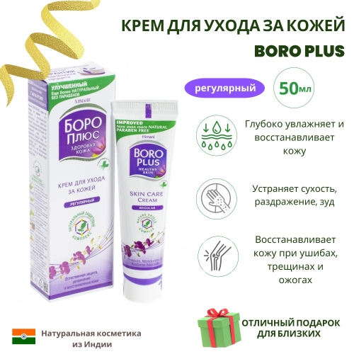№6227 Крем для ухода за кожей регулярный БОРО ПЛЮС 50 мл Крем для ухода за кожей BOROPLUS/БОРОПЛЮС регулярный. В состав крема входит «натуральный защитный комплекс» с уникальной комбинацией трав, известных своими восстанавливающими и успокаивающими свойствами.