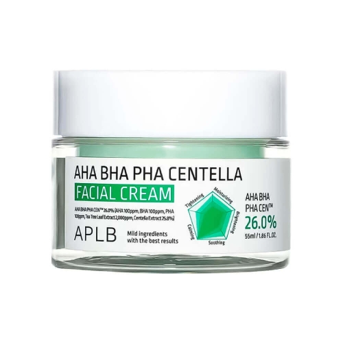 №2133 aplb aha bha pha centella facial cream Успокаивающий крем против воспалений APLB AHA BHA PHA Centella Facial Cream оказывает антибактериальное действие, восстанавливает и ускоряет заживление акне. Устраняет раздражение и красноту, снимает зуд и стимулирует регенерацию. Содержит комплекс кислот, экстракт центеллы и лотоса.