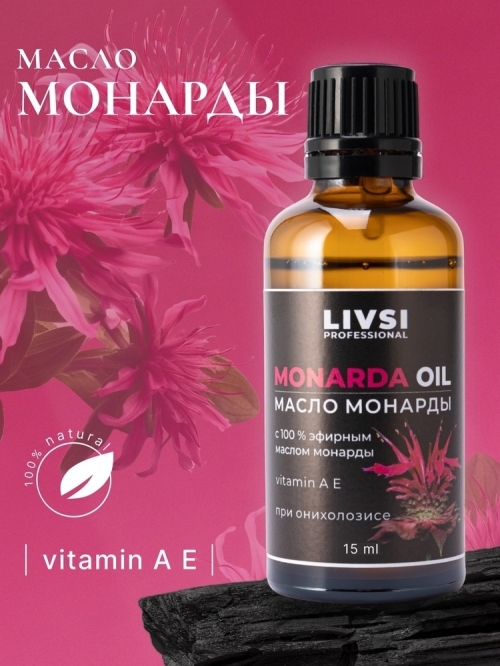 №8472 Livsi масло монарды 15мл Помогает: - при онихолизисе, грибке ногтей, отслоении, ломкости;- при сухости кутикулы;- при перхоти, повышенной сальности, при выпадении волос;- при псориазе, куперозе, дерматите, микозе, кератозе, лишае, экземах, бородавках;- при аллергии, герпесе, акне, постакне; - при простуде, вирусном и бактериальном заболевании, папилломы;-при ранах, укусах, ожогах. Масло Монарды давно зарекомендовало себя как мощное бактерицидное, противогрибковое, антивирусное и косметическое средство. Экстракт монарды эффективно борется с микробами, грибковыми поражениями, перхотью, аллергией, герпесом, акне и постакне. Положительно влияет на восстановление и рост ногтей, повышают плотность пластины, устраняют ломкость. Применение: наносить тонкий слой на поражённые участки ногтей или кожи и лёгкими движениями втирать до полного впитывания 3 раза в день в течение 25-30 дней. При себорее втирать в кожу головы за 2-3 часа до мытья. Для лица и шеи добалять в крем.