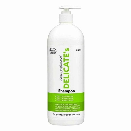 №4733 FREZY GRAND Шампунь для волос DELICATE 1000 мл Восстанавливающий профессиональный шампунь для волос без сульфатов, парабенов и силиконов - DELICATES 1000мл. Безсульфатное мягкое средство для деликатной очистки волос и кожи головы подходит после уходовых процедур: после кератинового выпрямления, ботокса (ботекса), нанопластики или наращивания волос. Бережная очищающая формула шампуня глубоко и мягко промывает волосы по всей длине. Входящий в состав косметической линии гидролизированный кератин обеспечивает глубокое восстановление поврежденных, тонких, натуральных, окрашенных или обесцвеченных волос, для волос после химической завивки. Keratin для выпрямления волос заполняет все поврежденные участки волоса, восстанавливая их.