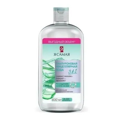 №7261 Я САМАЯ Гиалуроновая мицеллярная вода 600мл Гиалуроновая мицеллярная вода для нормальной и комбинированной кожи. Нежная мицеллярная формула на основе термальной воды не только мгновенно очищает кожу, но и одновременно глубоко увлажняет и ухаживает. Синергия мицеллярного комплекса и активных компонентов легко и естественно удаляет макияж с лица, глаз и губ без лишнего трения. Гиалуроновая кислота обеспечивает интенсивное увлажнение, поддерживает водный баланс, упругость и эластичность кожи. Сок алоэ обладает освежающим свойством, повышает тонус и препятствует обезвоживанию кожи, наполняя клетки кожи влагой.